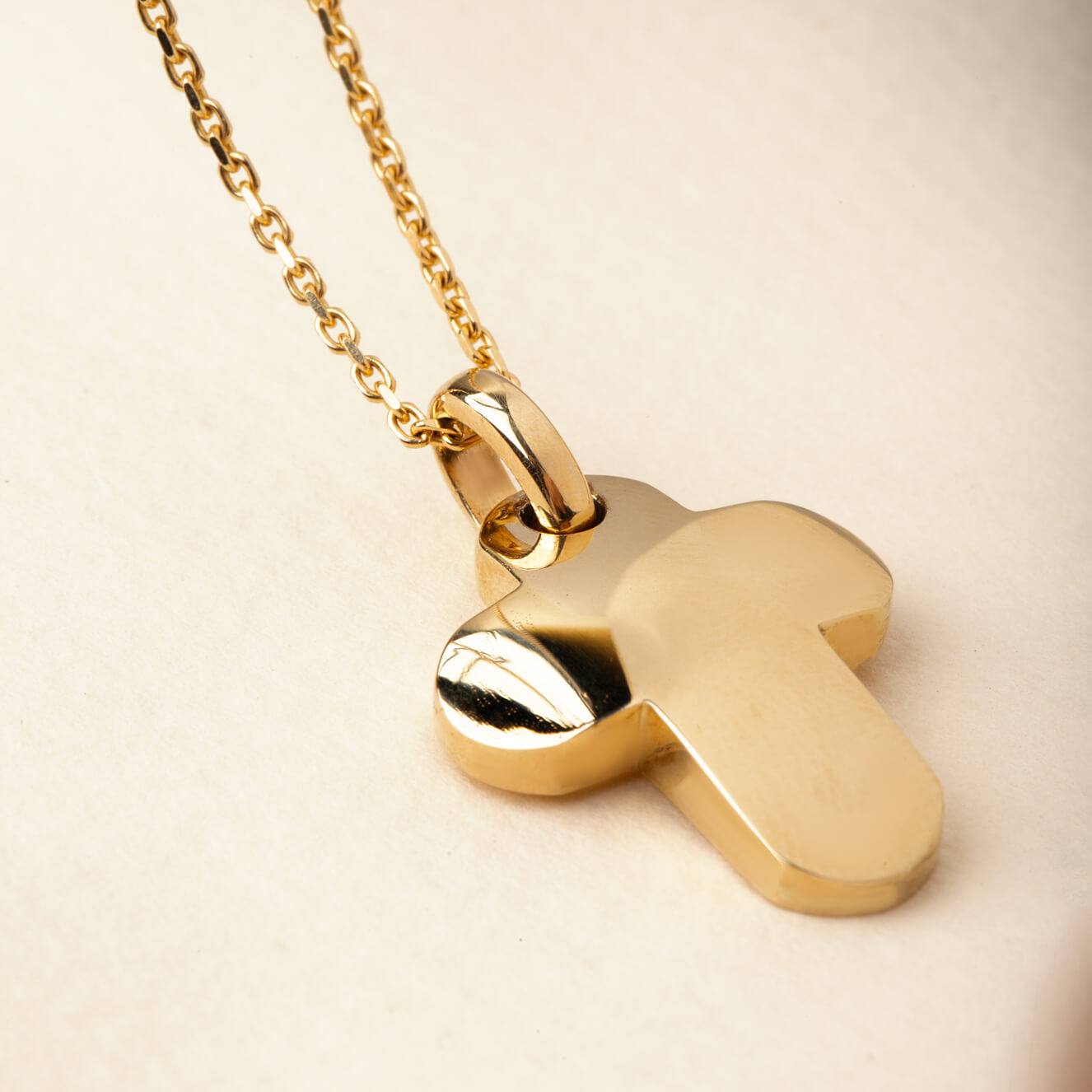 14K yellow gold plain unisex cross-pendant with an oval thick hanger on it’s top.