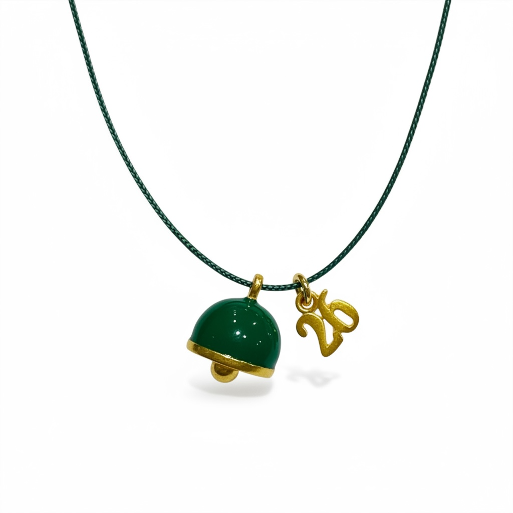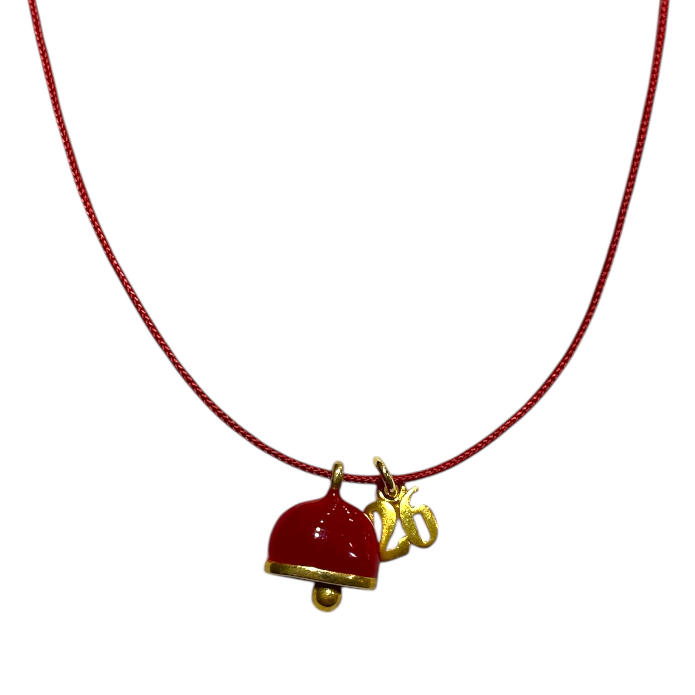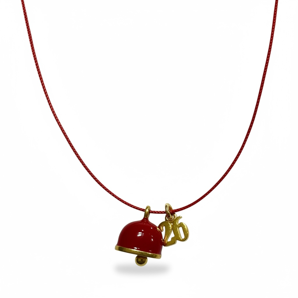 Delicate 2026 tiny bell charm in vibrant green, blue, and red color. A luxurious emblem of luck, positivity, and new beginnings to celebrate the New Year with elegance.